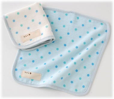 ニシキ お名前ネーム付きドットタオルハンカチ2枚組(ガーゼパイル) P9972 サックス・P9972S