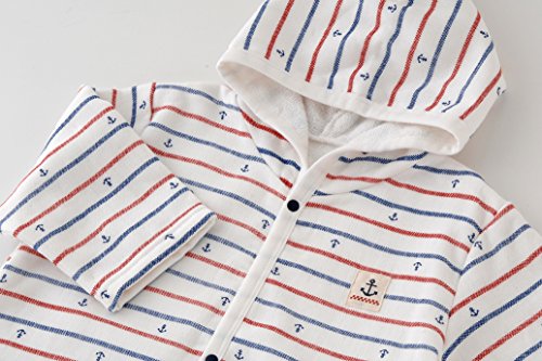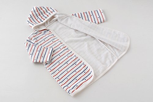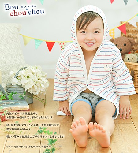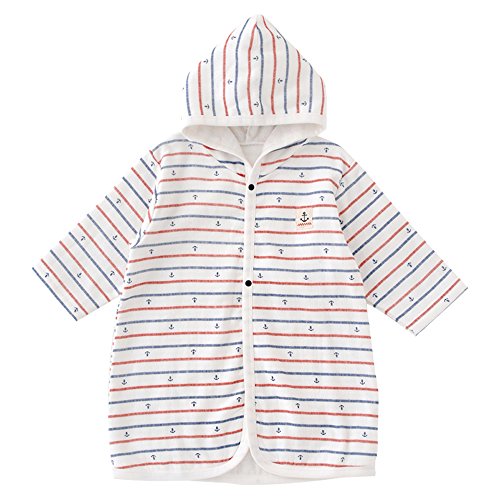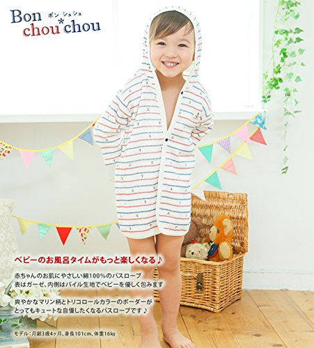 お風呂上がりの湯冷め防止に。ベビーのお風呂タイムがもっと楽しくなるバスローブ 表はガーゼ、裏はパイルになっている赤ちゃんのお肌に優しい素材を使用しました。キュートなマリン柄で出産お祝いのギフトにもおススメ!■素材:綿100%