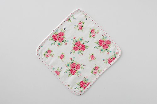 お顔やおててを拭いたりと用途いっぱいのハンドタオルは可愛いもので揃えたいね 表はガーゼ、裏はタオル地になっている赤ちゃんのお肌に優しい素材を使用しました。愛らしいお花柄で出産お祝いのギフトにもおススメ! ■素材:裏パイルガーゼ 綿100%
