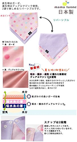 - 気分次第で2通りの付け方が楽しめる シンプルなリバーシブルスタイです。 表は優しいガーゼで肌触りバツグン! 裏面は吸水・撥水に優れた素材で よだれの染み込みを防止します。