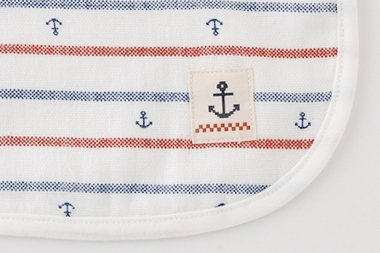 ナチュラルな雰囲気が愛らしいガーゼ素材のマリンボーダーマジック式よだれかけ お洋服との相性もGOODで贈り物にも喜ばれそう! 素材:ガーゼ 綿100%