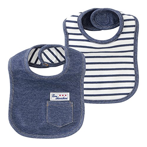 飾りポケットがついたオシャレなデニムニットとシンプルなボーダーがおしゃれなベビー必須アイテムのリバーシブルスタイ!お洋服との相性もバッチリのデザインで、贈り物にもおススメ★リバーシブルタイプで1枚で2度楽しめるスタイになってます ■リバーシブル■1枚売り■素材■デニムニット生地:綿97%ポリウレタン3%ボーダー生地:スムース 綿100%