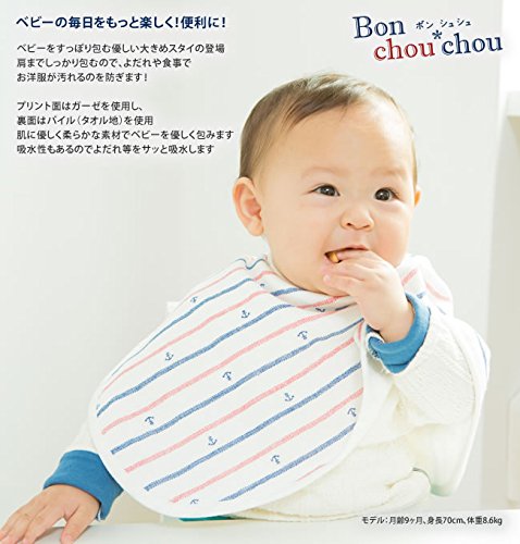 - お 出 か け 先 や 帰 省 先 で も 大 活 躍 !元気なベビーにぴったりのトリコロールカラーが可愛いマリンテイストのボーダーをプリントしましたベビーがスタイとして着用する時はパチッと簡単なスナップ留め着脱が簡単でお出かけ先でも楽に付けられますよだれかけ、吐き戻しの汚れ防止、お顔拭きなど用途いっぱいなので旅行や帰省にも持っていきたいアイテムです!