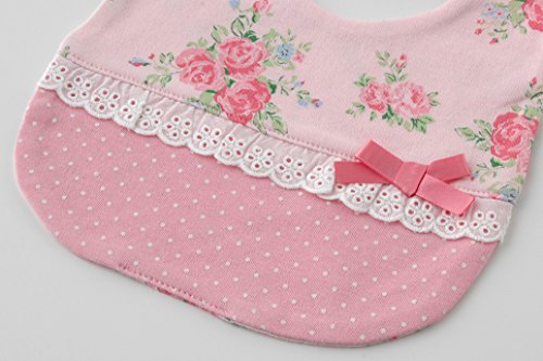 上品な花柄とドットが可愛いスタイ。リボンやレースをあしらって可愛く仕上げました。出産準備やお誕生日プレゼントにもおススメです ■素材■表地・裏地:スムース 綿100%中地・リボン:ポリエステル100%■1枚売り