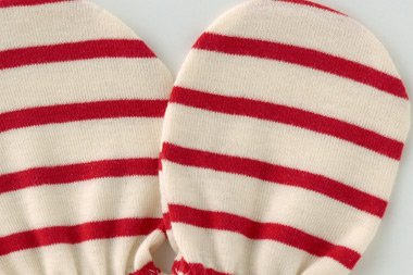 シンプルなボーダーがとっても可愛い肌に優しい綿100%のミトンです。ちっちゃなおててにサッと付けてお顔の引っ掻き防止しよう。■素材:スムース 綿100%