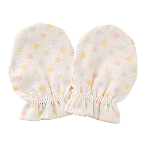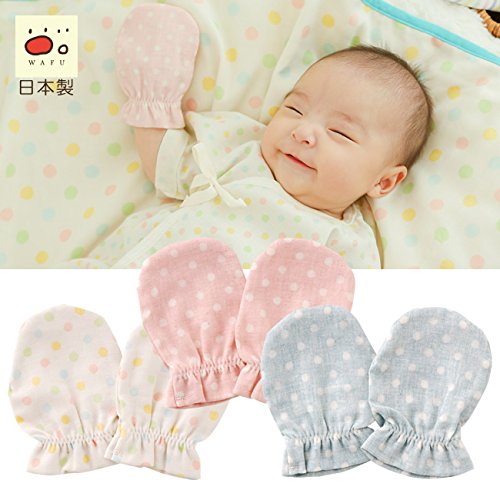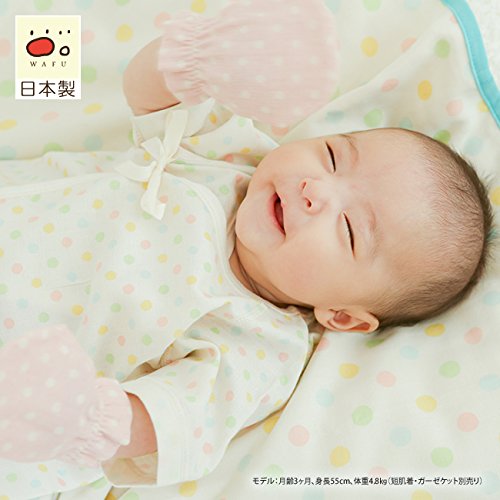 日本工場(島根県益田市)で熟練のスタッフが心をこめて作り上げた*WAFU(わふ)*シリーズのドットが可愛いミトンです。昔ながらの赤ちゃんの肌に優しいガーゼ綿100%を使用しました。■素材:ガーゼ 綿100%