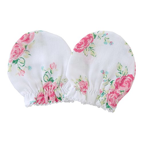 お花のプリント入りのガーゼ綿100%で出来たミトンです。まだ爪切りが出来ないベビーの為にちっちゃなおててにサッと付けてお顔の引っ掻き防止しよう。■素材:ガーゼ 綿100%