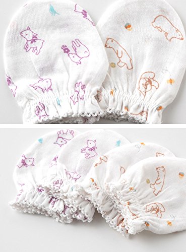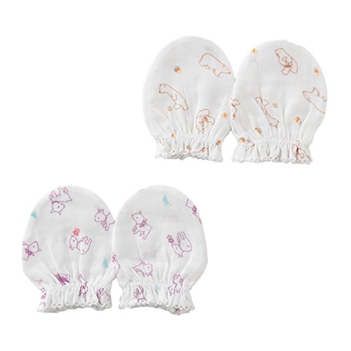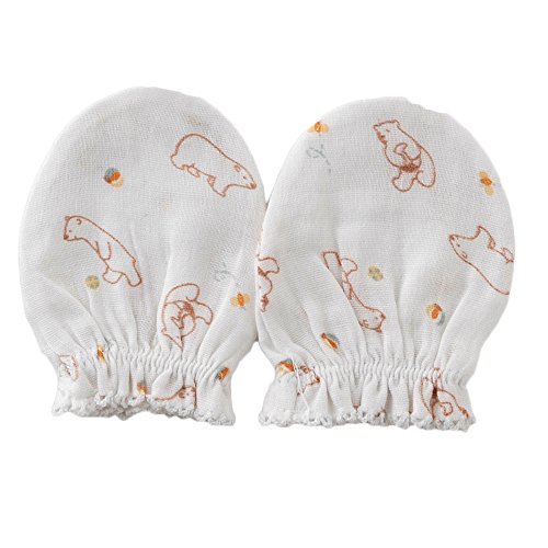 - ちっちゃなおててを可愛く包むミトン 生まれたてベビーの小さな手を可愛く包むガーゼミトン。 生まれたばかりの赤ちゃんの爪は薄く意外に鋭いもの。 自分でお顔を引っ掻いて大泣きすることもしばしば。 お顔引っかき防止に役立つミトンはベビーのマストアイテムです。 ママの心も和む白クマさん、子ヤギちゃんのプリント入り! 通気性の良いガーゼもベビーに嬉しいポイントです。