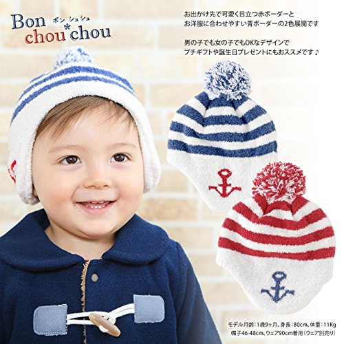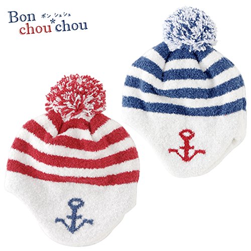 (チャックル) chuckle *ボンシュシュ*ボンボン付きマリン柄マシュマロニット帽子【日本製】 レッド 46-48cm P9288-48-21
