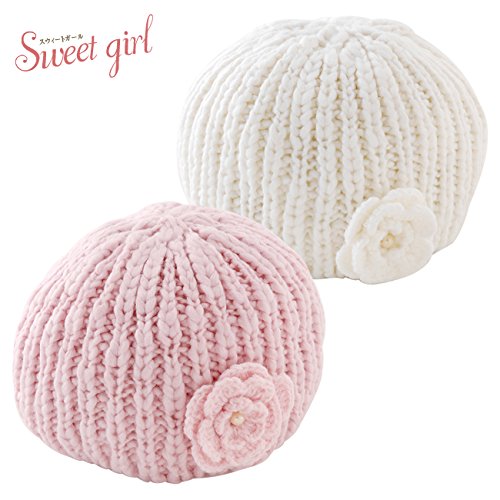 (チャックル) chuckle *スウィートガール*お花付きニット帽子 ホワイト 46-48cm P9270-48-10
