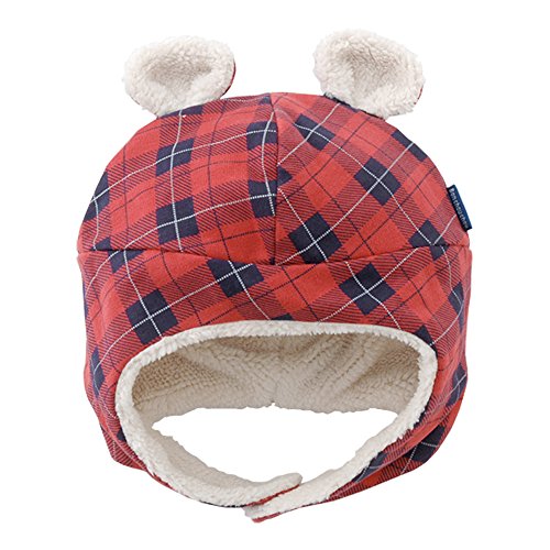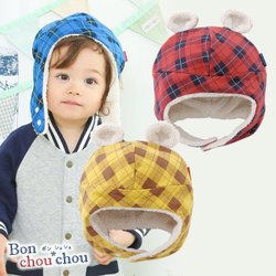 お出かけ先で可愛く目立つ!チェック柄が可愛いクマ耳付きあったか帽子 出産お祝いのプチギフトにもおススメ。