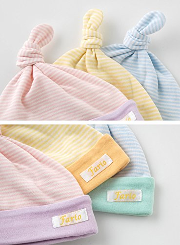 - ベ ビ ー の ち っ ち ゃ な 頭 を 可 愛 く 包 む 帽 子 ! キュッと結んだデザインがとってもキュートな 新生児ベビーの頭を可愛く包むパステルボーダーの帽子です