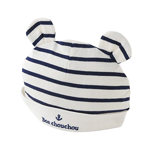 - ちっちゃな頭を可愛く守る新生児帽子 赤ちゃんの頭は柔らかく未発達なので 外出時はもちろん、お部屋の中でも帽子を被りましょう シンプルなボーダーにちょこんと付いたお耳がキュート! 中央にはおしゃれにロゴの刺繍を入れました。 お揃いの新生児ツーウェイオールを合わせて可愛くコーデしたいネ♪