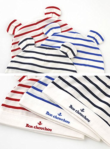 (チャックルベビー) chuckle BABY * ボンシュシュ * 耳付き ボーダー 新生児帽子 ネイビー 50-60cm P9225-00-32