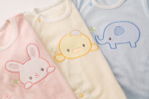 - 清潔感のある爽やかな水色パイル生地を使用。男の子が大好きなゾウさんのアップリケ付きです♪春、夏、秋冬向きの素材です。