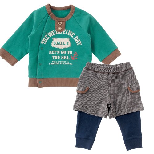 セパレーツデビューベビーにぴったり!お着替え簡単、前開きのトレーナー&スパッツ一体型のボトムスの上下セット☆デイリー使いに便利なシンプルデザインで、単品使いをしてもOKなお得なセットです!■素材■トップス:綿95%、ポリウレタン5% ボトムス:綿100%