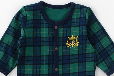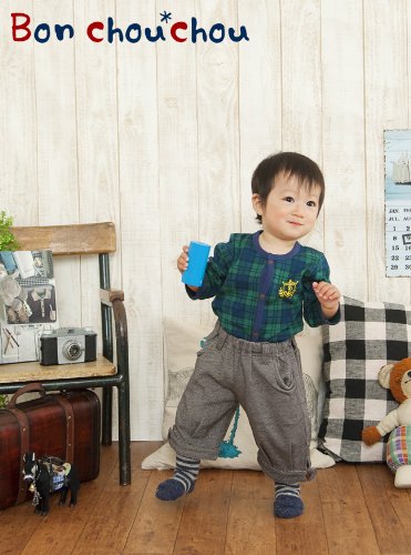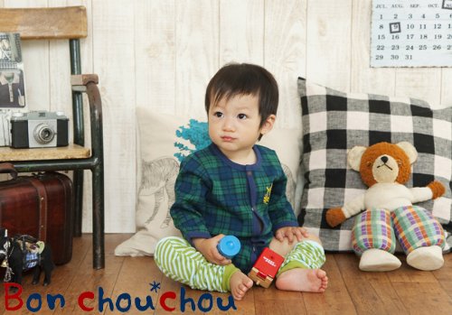 (チャックル) chuckle *ボンシュシュ*タータンチェック長袖前開きロンパース【13AW】 グリーン 60cm P2365-60-70