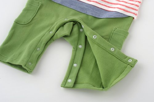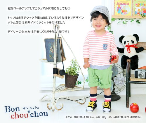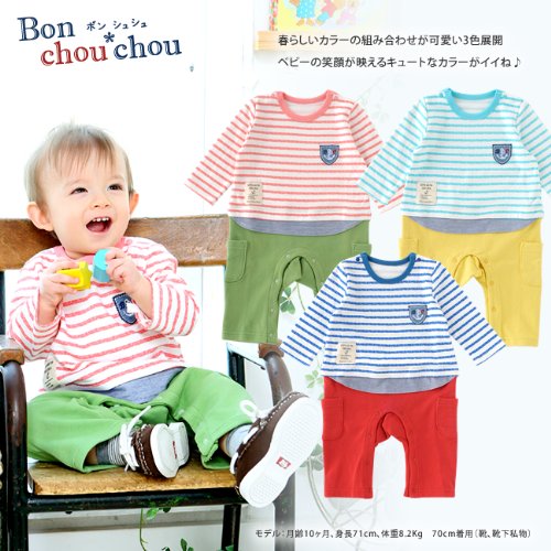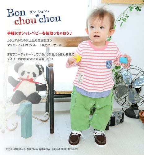 (チャックル) chuckle *ボンシュシュ*重ね着コーデ風ボーダー長袖カバーオール グリーン 70cm P2671-70-70