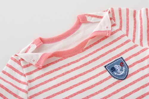 - 1枚でオシャレコーデの完成!着崩れもせず、ママ安心の1着です。両肩開きで、首回りが大きく開くので着脱簡単! 股部分はスナップで、おむつ替えもラクラク♪
