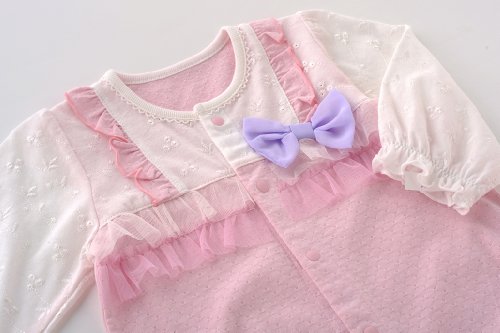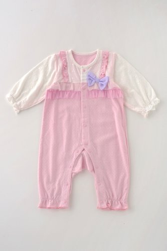 (チャックル) chuckle *スウィートガール*フリルりぼん爽やか長袖カバーオール ピンク 70cm P2662-70-20
