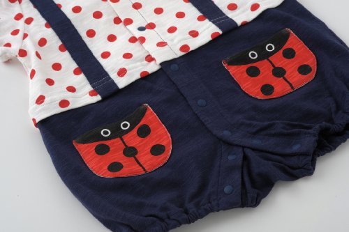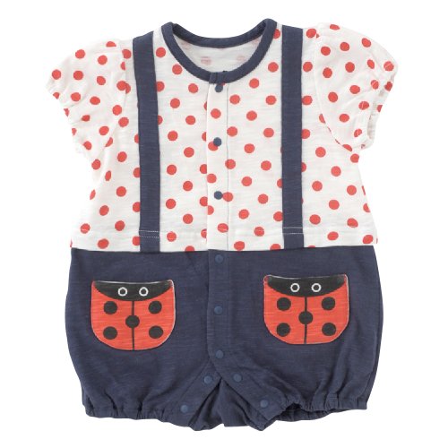 - てんとう虫に変身!赤のドットが可愛い!キュートななりきり半袖カバーオール☆ベビーらしい可愛いデザインで出産お祝いのギフトにも◎