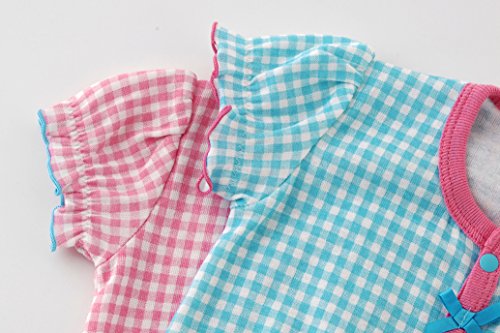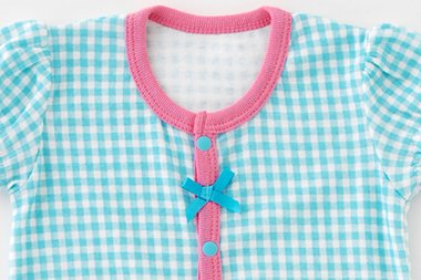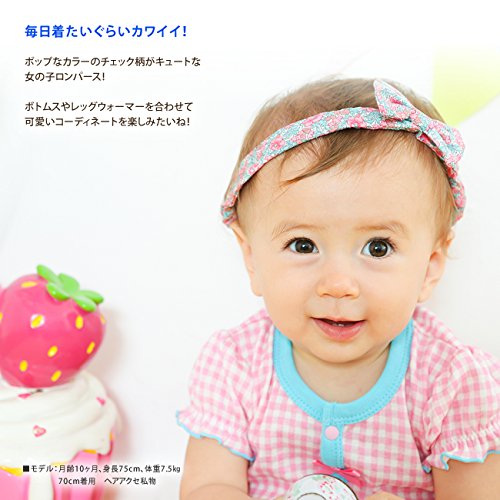 (チャックル) chuckle チェックリボン半袖前開きロンパース サックス 60cm P2179-60-30