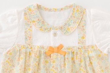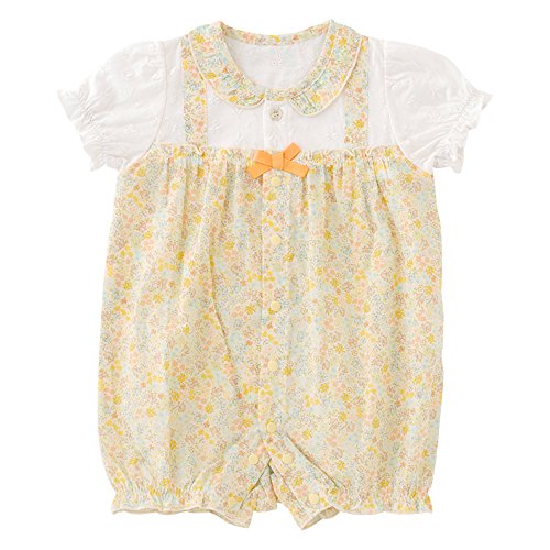 (チャックル) chuckle *スウィートガール*小花柄半袖前開きカバーオール イエロー 80cm P2592-80-41