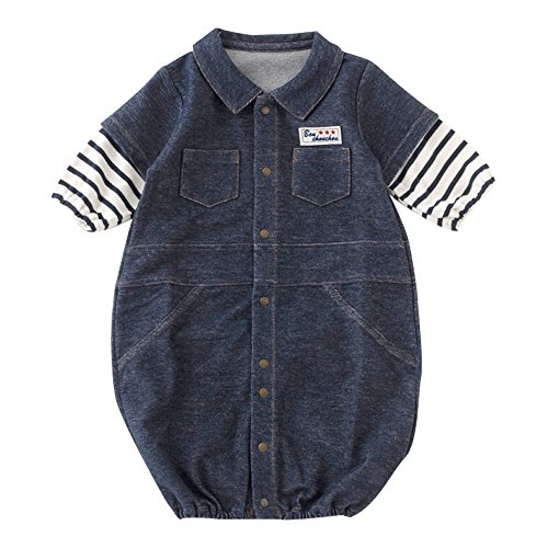 (チャックル) chuckle *ボンシュシュ*デニム調つなぎ風新生児ツーウェイオール ネイビー 50-60cm P5242-00-31