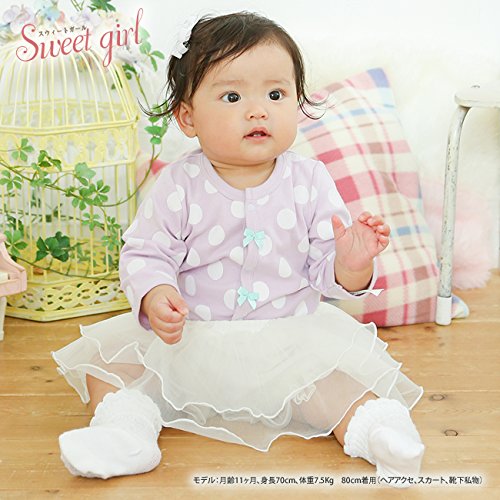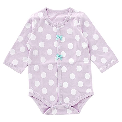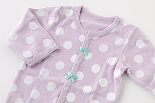 (チャックル) chuckle *スウィートガール*りぼんドット前開き長袖ロンパース パープル 80cm P2384-80-70