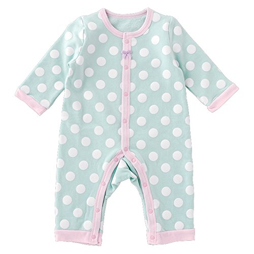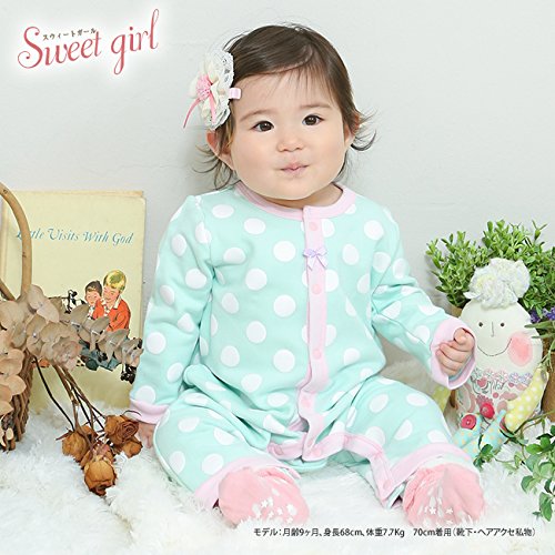(チャックル) chuckle *スウィートガール*ドットりぼん前開き長袖カバーオール【裏起毛】 グリーン 80cm P2991-80-70