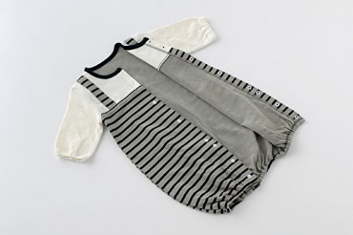 やや厚みのある冬素材を使用した普段着にぴったりのシンプルボーダーが可愛い新生児ツーウェイオールです。ツーウェイオールは、ねんねの時期はドレスとして活発に足を動かし始めたらスナップを留め変えカバーオールタイプとして着せましょう。出産お祝いの贈り物にもおススメです。■素材■本体:エアニット 綿100%