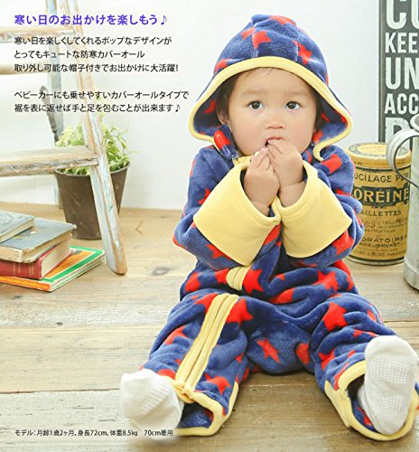 - わ く わ く お 出 か け が 待 ち 遠 し い !ポップなデザインが目を引くキュートな防寒カバーオール取り外しが可能な帽子付きです手足の裾を折り返せばすっぽり包める暖かタイプベビーカーにも乗せやすく冬のお出かけに重宝しますクセになる肌触りのソフトボアを使用した出産お祝いのギフトにもおススメの防寒カバーオールです