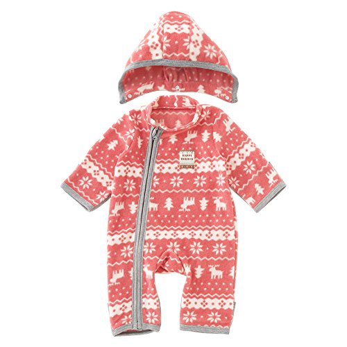 (チャックル) chuckle *ボンシュシュ*ノルディックフリースフード付き防寒カバーオール レッド 80cm P2917-80-21