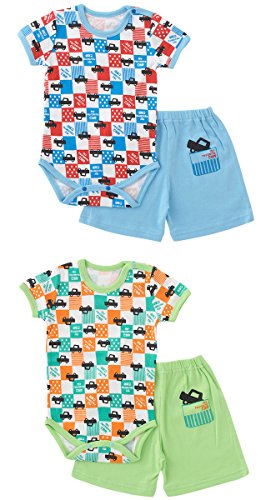 (チャックル) chuckle クルマ柄半袖ロンパース&ズボン グリーン 80cm P3194-80-70