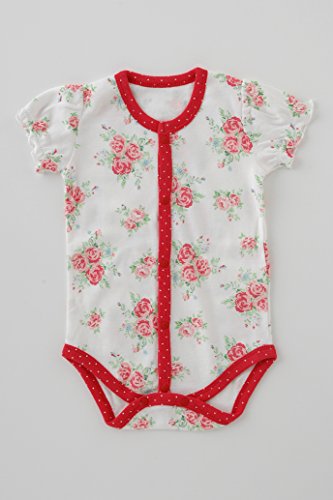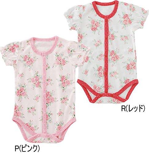 (チャックル) chuckle *スウィートガール*お花柄ローズ半袖前開きロンパース レッド 80cm P2184-80-21