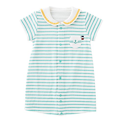 (チャックル) chuckle *ボンシュシュ*セーラー襟ボーダー半袖ショート丈新生児ツーウェイオール グリーン 50-60cm P5014-00-70