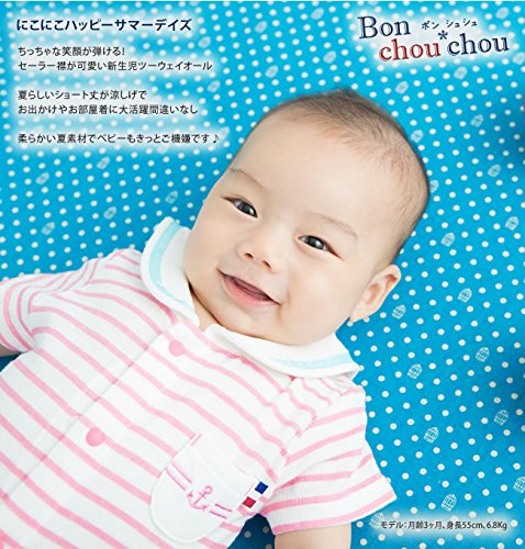 - セ ー ラ ー 襟 で “ か わ い い ” を 独 り 占 め !マリンスタイルが可愛く決まるセーラー襟が可愛い夏に生まれるベビー向けの新生児ツーウェイオール愛らしいピンク、夏にぴったりのブルー、爽やかなミントグリーンのベビーの笑顔に良く似合う3色展開ですお披露目やお出かけなどみんなが集まる場所に着せて行きたい1着♪