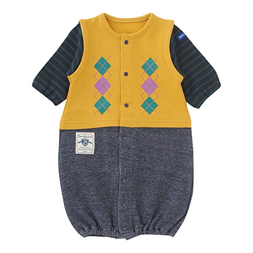 まるでベストを重ね着しているように見える普段着にぴったりの新生児ツーウェイオール。しっかりとした素材で春、秋、冬におススメです。新生児のねんね時期はドレスとして、活発に足を動かし始めたら、足元のホックをとめ替えてカバーオールとして着せてあげよう。■素材:ニミ裏毛/デニム調裏毛/スムース 綿100%