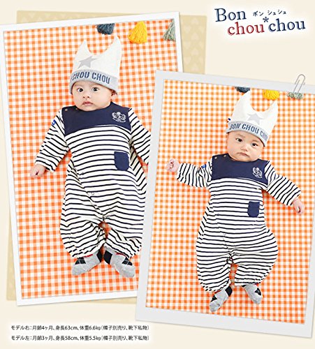 ※モデル着用帽子は別売りです※シンプルなボーダーがオシャレな普段着にぴったりの新生児ツーウェイオール。程よい厚みの通年素材を使用しました。新生児のねんね時期はドレスとして、活発に足を動かし始めたら、足元のホックをとめ替えてカバーオールとして着せてあげよう。■素材:スムース 天竺 綿100%