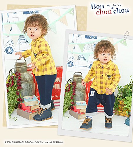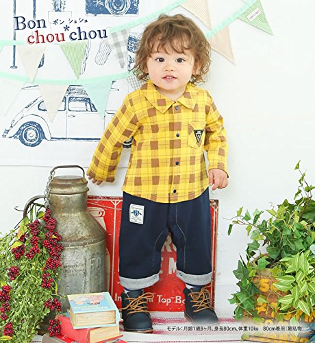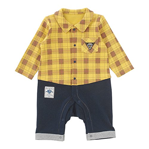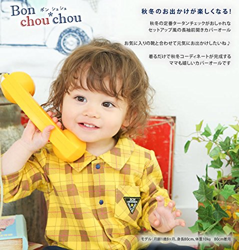(チャックル) chuckle *ボンシュシュ*タータンチェック長袖前開きカバーオール イエロー 80cm P2970-80-41