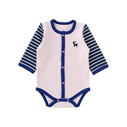 - ボ ー ダ ー 切 り 替 え が オ シ ャ レ な ロ ン パ ー ス胸元にトナカイさんをプリントした袖はボーダーで切り替えた長袖前開きロンパースお気に入りのボトムスやレッグウォーマを合わせてお部屋着やパジャマとして大活躍します!ロンパースはベビーの必須アイテム出産お祝いのプチギフトにもおススメです