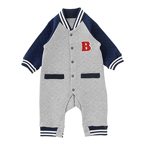 - ス タ ジ ャ ン 風 カ バ ー オ ー ル で 可 愛 く お 出 か け !男の子ベビーの愛らしさが引き立つスタジャン風の長袖前開きカバーオールです!ざっくりとしたキルト生地を使用したアウター風の作りで秋冬のお出かけにぴったりですハンサムベビーで可愛くお出かけしようね♪
