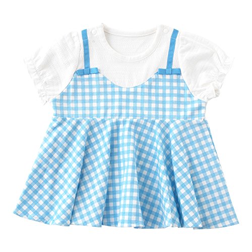 (チャックル) chuckle *スウィートガール*ギンガムチェック重ね着風半袖チュニック サックス 95cm P3354-95-30