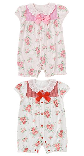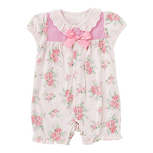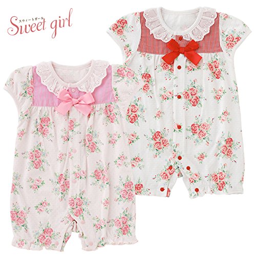 (チャックル) chuckle *スウィートガール*ローズお花柄半袖前開きカバーオール ピンク 60cm P2461-60-20
