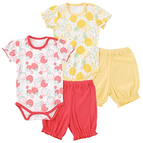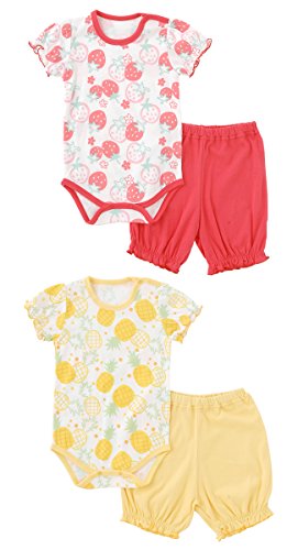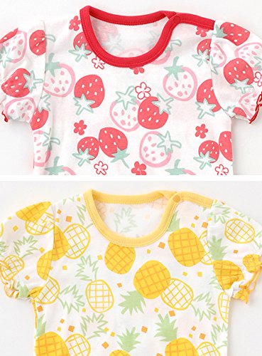 - 夏 の お 部 屋 着 や パ ジ ャ マ に ! 爽やかなフルーツ柄がキュートな お部屋着やパジャマにぴったりのロンパース&ズボンセット 夏らしい爽やかな素材を使用した涼しげなウェアセット 女の子が大好きなイチゴ柄と 夏らしいパイナップル柄の2色展開です