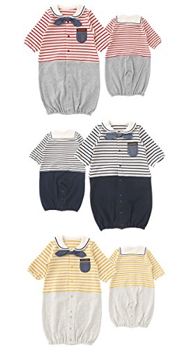 - カジュアルなボーダーで普段着はもちろん、退院着やお披露目 検診時のお出かけに着せたい1着です 元気なレッド、定番人気のネイビー、可愛さ引き立つイエローの5色展開 出産お祝いのギフトにもおススメです