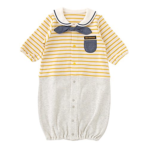 ( チャックル ) chuckle * ボンシュシュ * セーラー襟 ボーダー 新生児 ツーウェイオール イエロー 50-60cm P5274-00-41