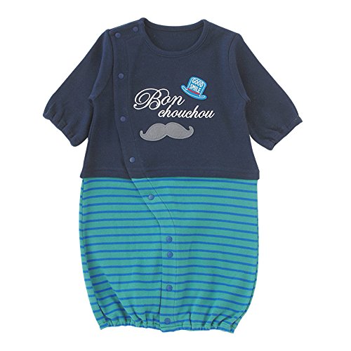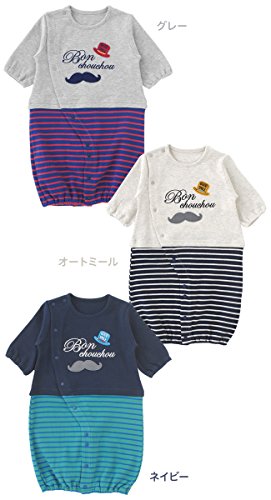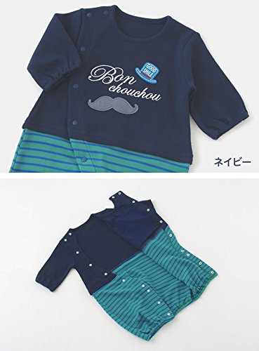 ( チャックル ) chuckle * ボンシュシュ * ひげマーク 切替え ボーダー 新生児 ツーウェイオール ネイビー 50-60cm P5273-00-32