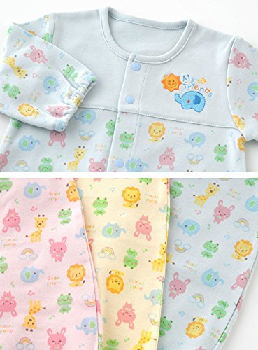- 動 物 さ ん た ち が 可 愛 い 新 生 児 ベ ビ ー 服 カラフルなどうぶつさんのプリントがとってもキュートな ベビーの愛らしさが引き立つ新生児ツーウェイオールです
