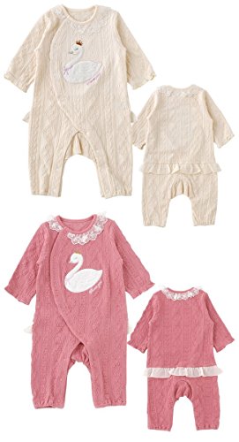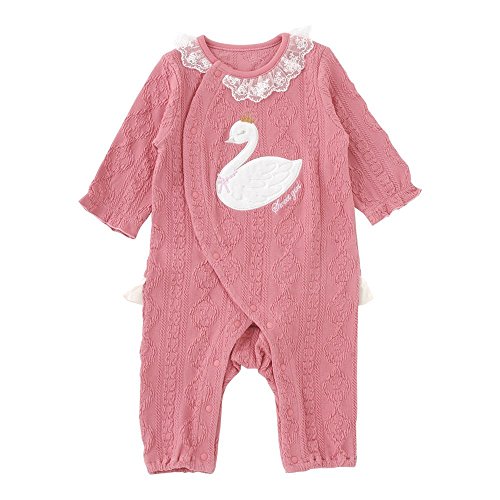 ( チャックル ) chuckle * スウィートガール * スワン 長袖 前開き カバーオール ピンク 80cm P2947-80-20